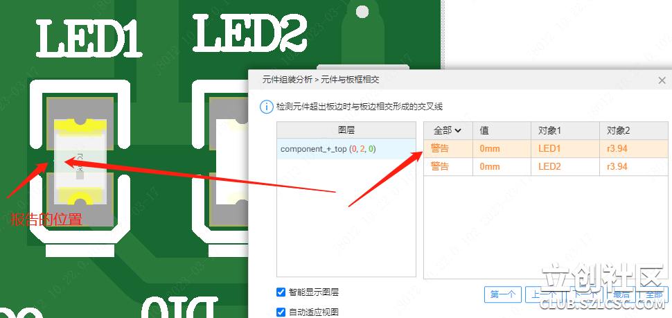 见下图,元件明明在板内,却报告元件与板框相交,看起来不合理。