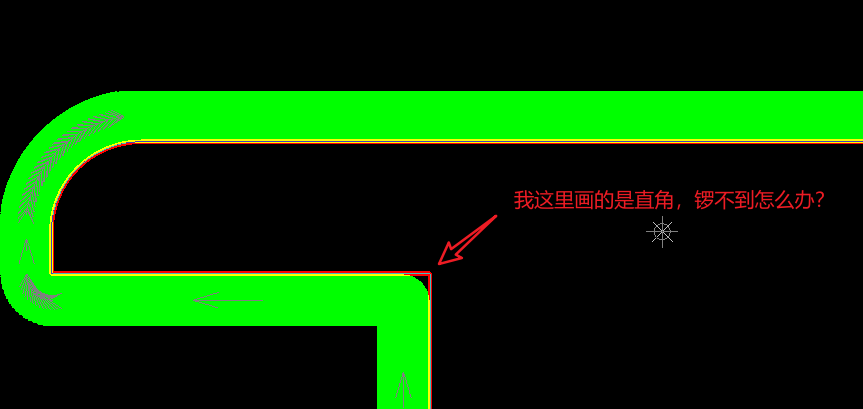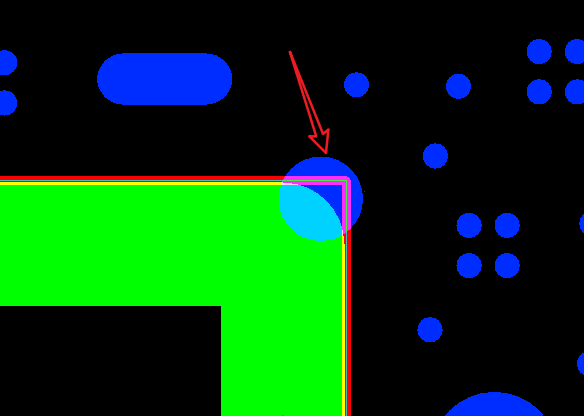 如下图这个区域的外型画线,是属于用户设计错误,它是有歧义的,对于下游板厂来说,不知道这里是要切割掉,还是要保留。