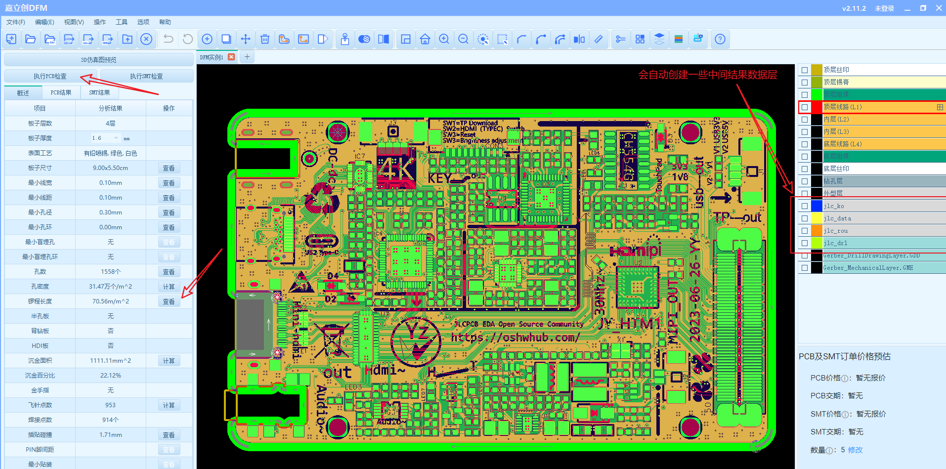 最简单的方式就是一键【执行PCB检查】,会自动计算出锣程长度,如下图所示