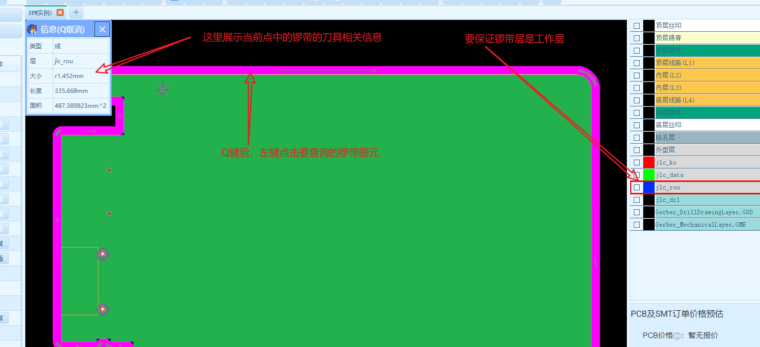 本功能就是方便用来计算电路板的锣程,预估制造成本。